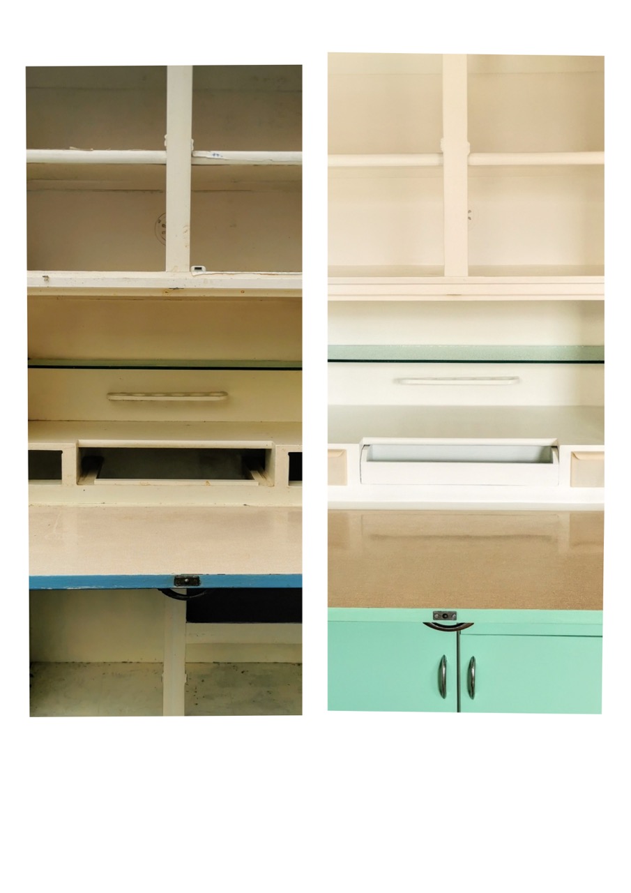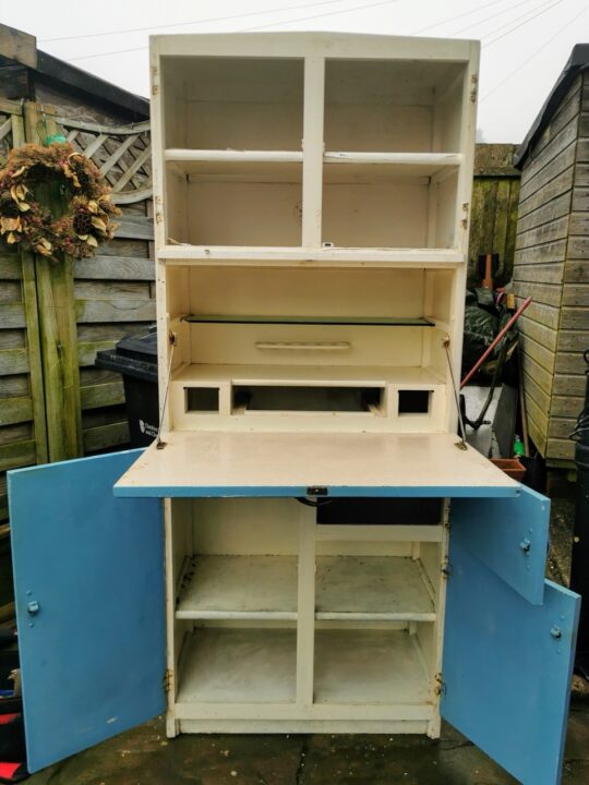 This mid-century Maid Marion kitchen larder unit from the 1960s was in a pretty dreadful state when we found it. Peeling paint, worn-out surfaces, and neglected hardware meant it had been long forgotten -but we could see the potential straight away. Beneath all that wear was a sturdy, well-made piece just waiting to be revived.