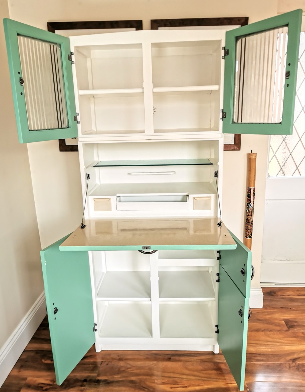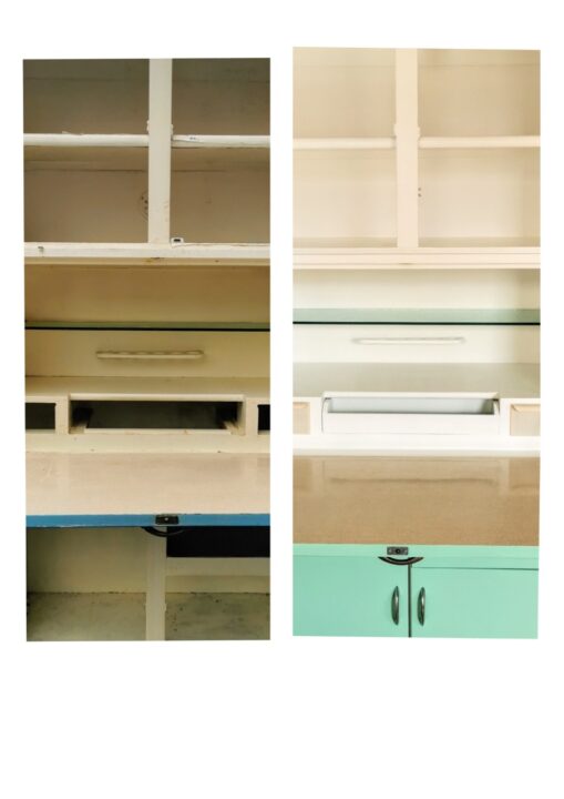 Now fully transformed, this once-forgotten larder has become a bold, eye-catching piece perfect for a retro-styled kitchen. With its original features preserved and its colours brought bang up to date, it’s ready for a brand new chapter in a new home.