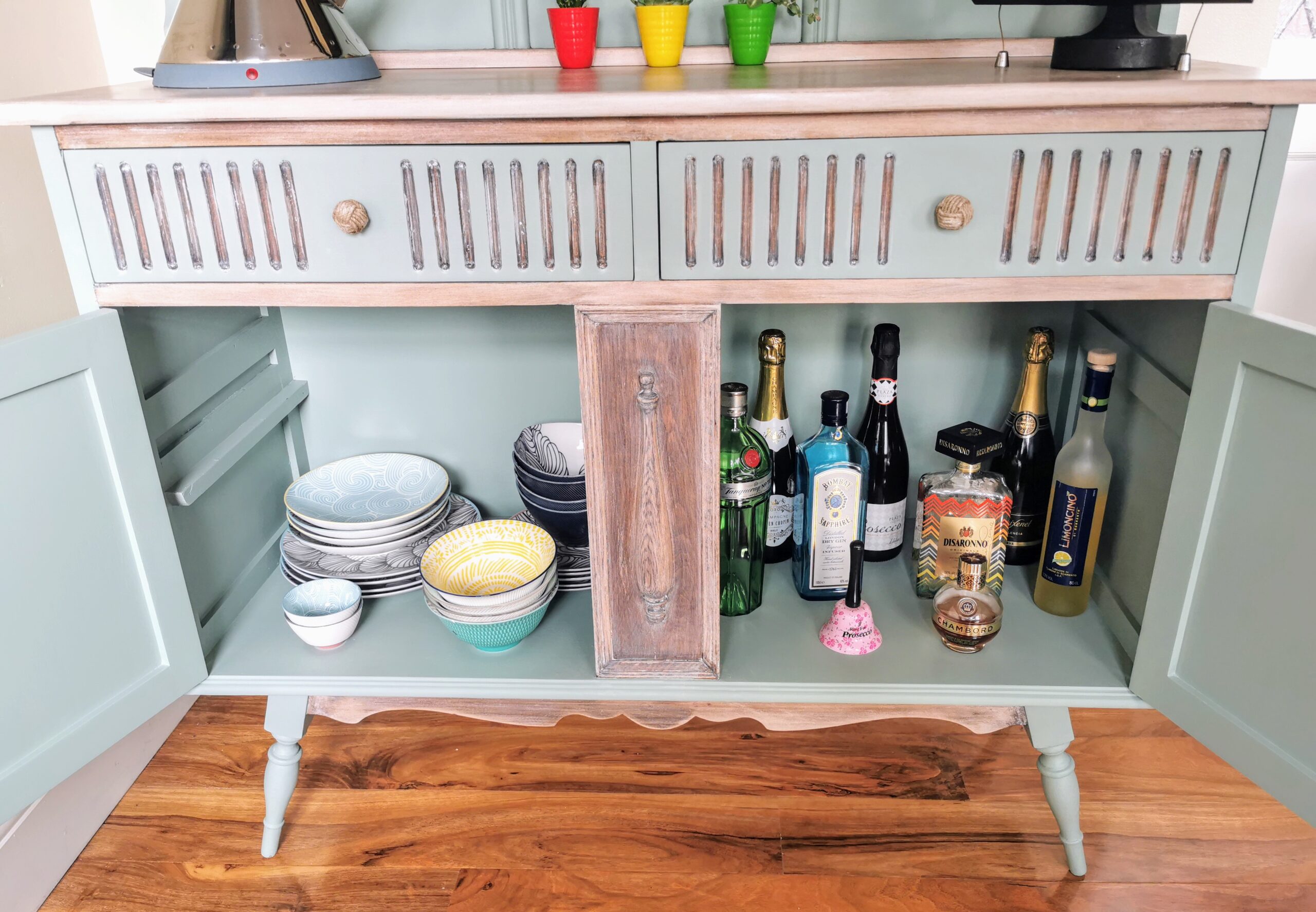 Say hello to this serene and beautifully reimagined Welsh dresser, inspired by coastal living and full of character. We discovered this charming piece in the wilds of Yorkshire, but its story begins much further afield—it was originally crafted in South Africa in the 1960s from dark wood and travelled with its family to England in the 1980s, settling near the North and West Yorkshire border.