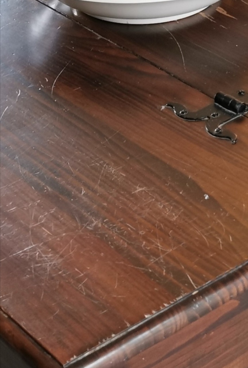 We started by stripping back the old varnish from the surface, then sanded it right down to achieve a smooth, clean finish. Once prepped, we applied a rich dark wax to bring out the grain and give the top a warm, restored look.