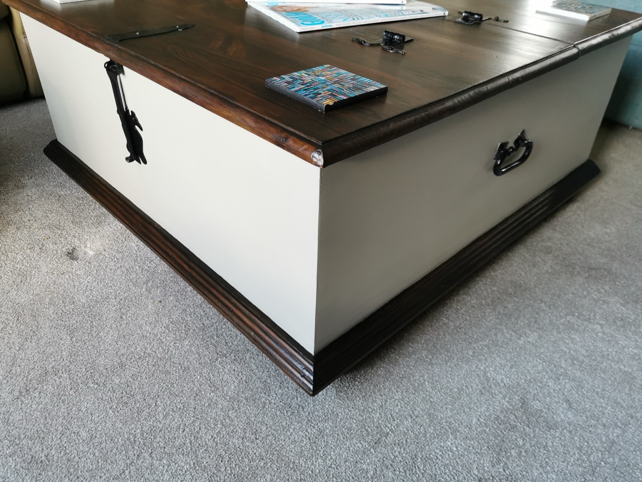 Our lovely client asked us to give their much-loved trunk coffee table a bit of a makeover – something to tidy it up and help it blend in with the rest of their lounge furniture and décor. Over the years, the trunk had picked up quite a few scratches, especially across the top, so it needed some proper attention.