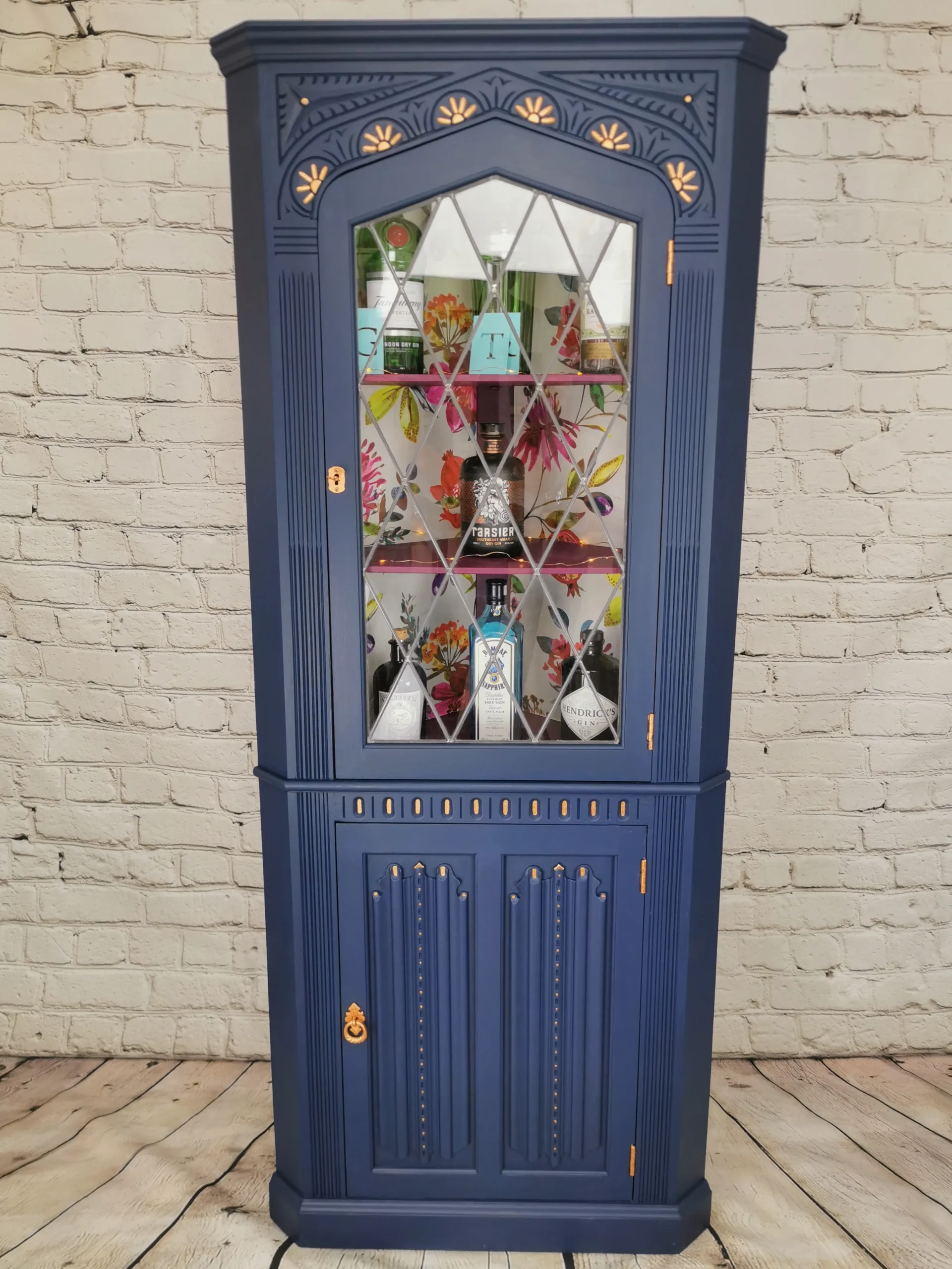 A truly one-of-a-kind corner drinks cabinet that blends vintage charm with modern elegance. Lovingly upcycled from solid wood, it brings style, colour, and character to any space while fitting neatly into a corner – perfect for compact rooms that still deserve a standout piece.